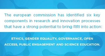 The European Commission has identified six key components in Research and Innovation processes that have a strong potential to bring RRI into action: ethics, gender equality, governance, open access, public engagement and science education. Find out more here.