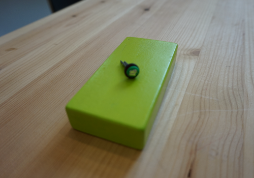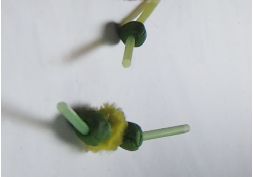 This object represents the human eye and the green is the optical nerve that has been severed, visible in red. A substance based on nano-technology is injected in the optical nerve to reconnect or heal it so that vision can be restored.