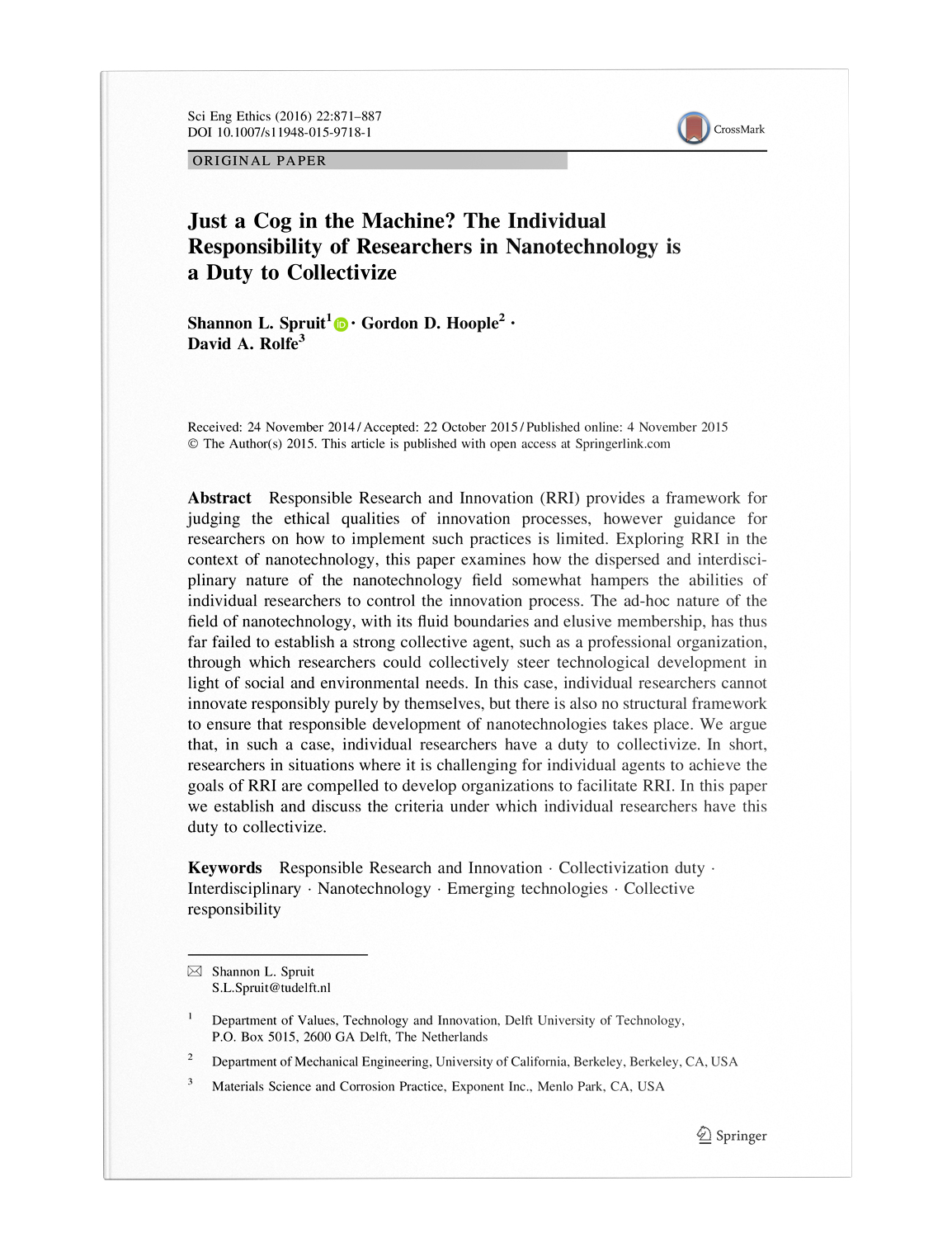 Reconfiguring Responsibility, Deepening Debate on Nanotechnology