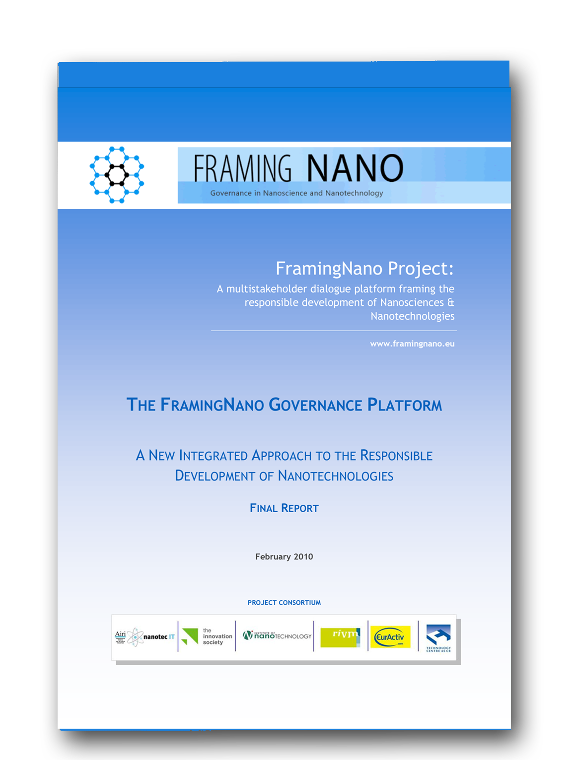In the opening chapter of this report (“The FramingNano Governance Platform”) the proposal for a Governance Platform is presented, which was the objective of the FramingNano project. In the following two chapters, “Outlining the Problem of Nano Governance” and “Stakeholder Opinions on Nano Governance”, some of the research results which have been gained throughout the project on nanotechnology governance are reported in detail.
